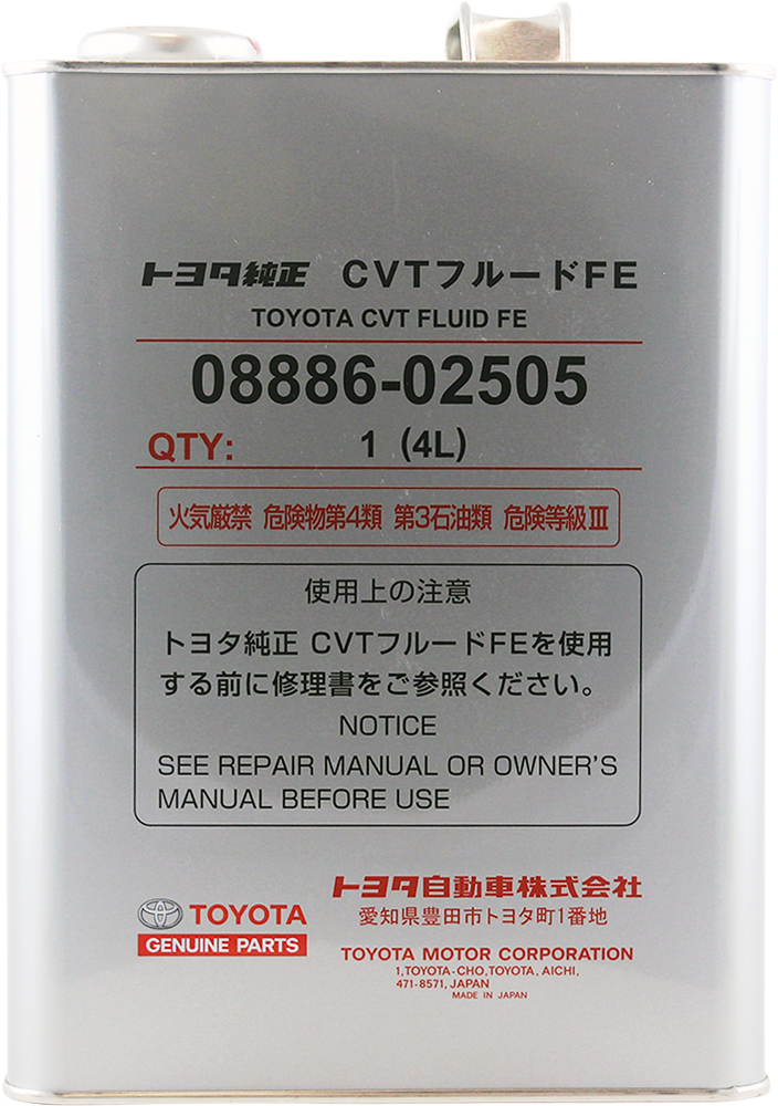 Техническая жидкость представляет собой синтетический смазочный материал для вариаторных коробок переключения передач автомобилей Toyota и некоторых других марок. Продукт изготовлен на основе гидрокрекинговой базы с использованием оптимального пакета моющих и противоизносных присадок, не вызывающих коррозию содержащих медь деталей. За счет пониженной вязкости автомасло обеспечивает экономию топлива и отличные никзотемпературные характеристики.Масло CVT Toyota разработано для использования в вариаторных коробках Aisin K110, K111, K112, установленных на автомобили Тойота, Дайхатсу и Лексус. Артикул TOYOTA CVT Fluid TC рекомендован к применению в узлах, выпущенных до апреля 2012 года, а TOYOTA Genuine CVT Fluid FE – после.